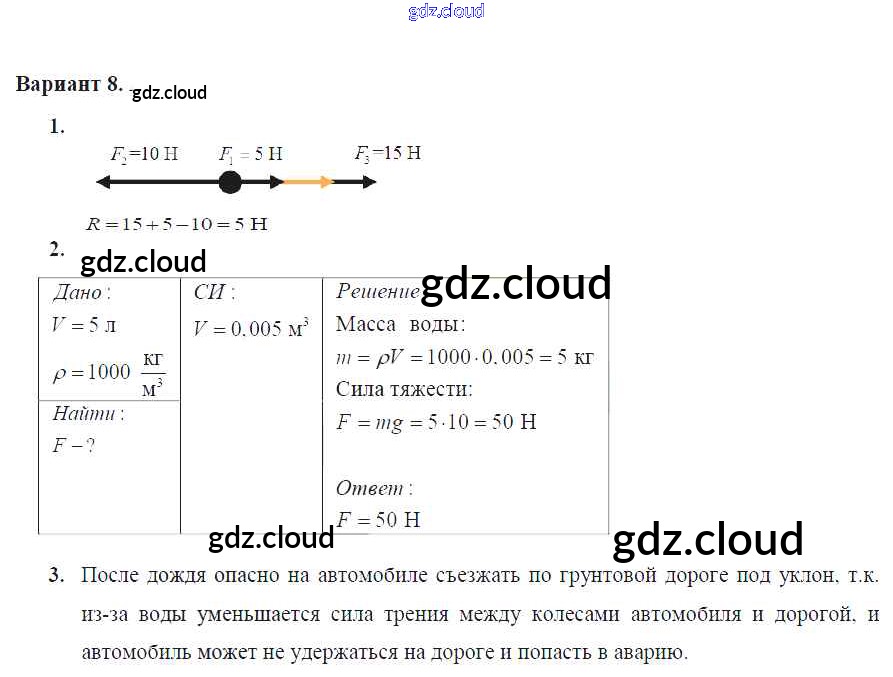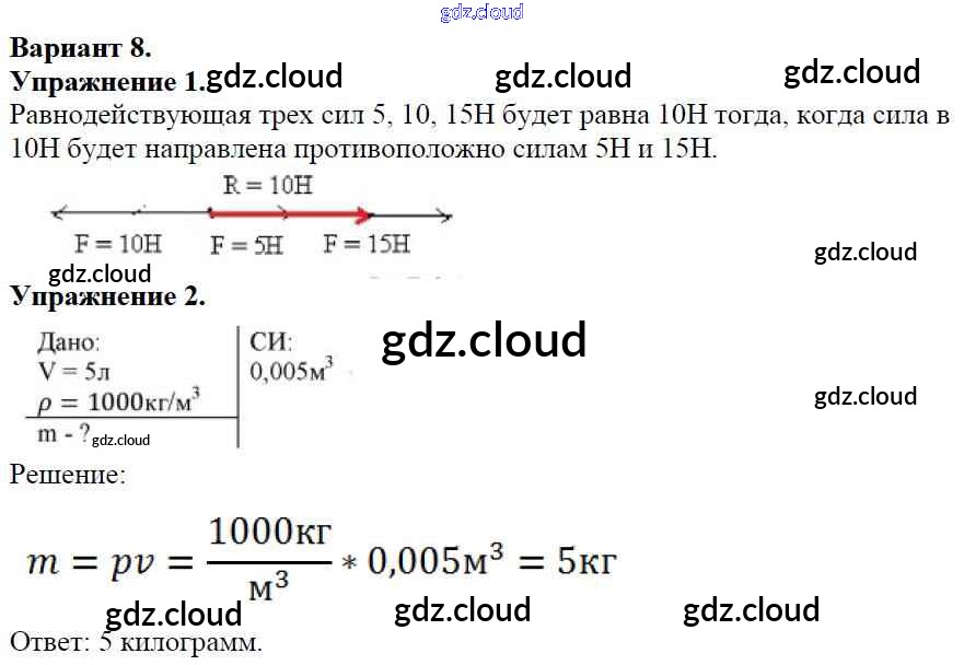 Ответ на задание Вариант №8 Дидактические материалы Физика за 7 (седьмой) класс Марон Вертикаль 2019