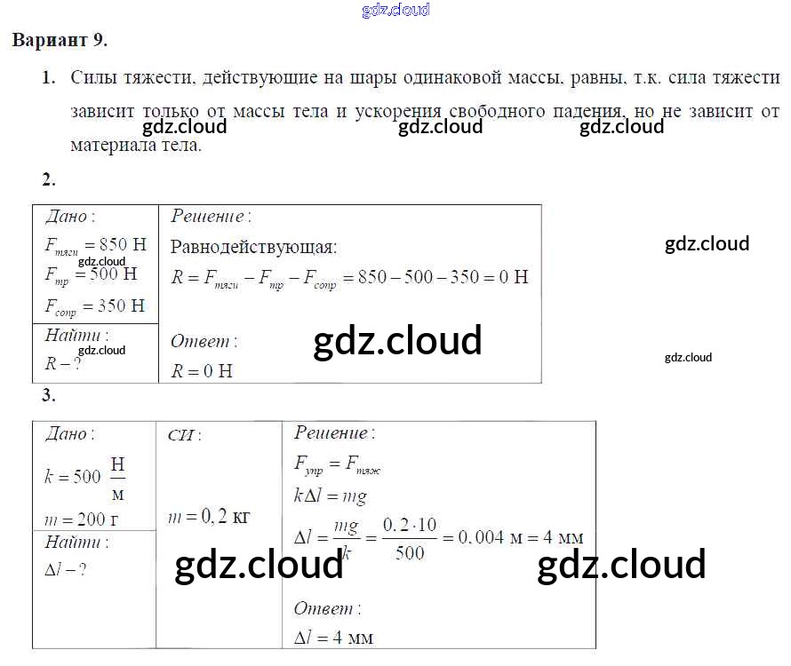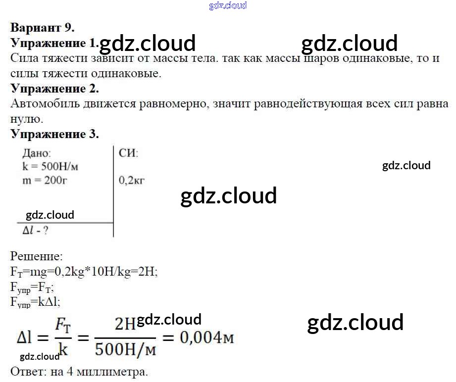 Ответ на задание Вариант №9 Дидактические материалы Физика за 7 (седьмой) класс Марон Вертикаль 2019