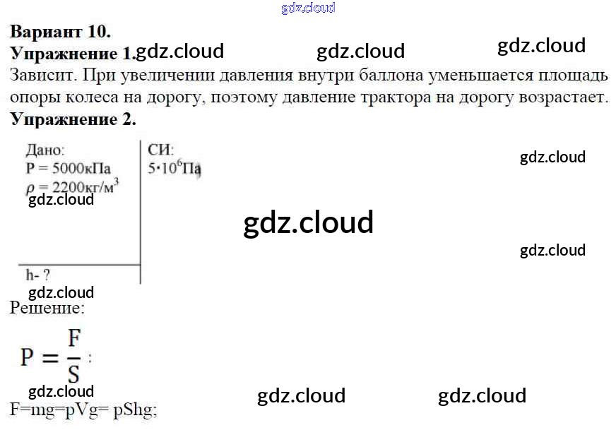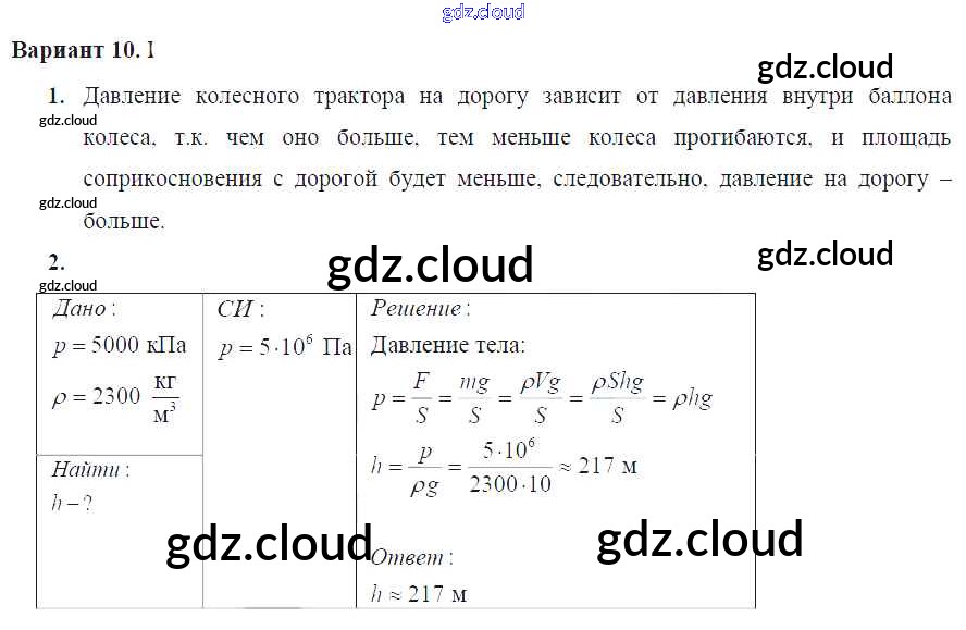 Ответ на задание Вариант №10 Дидактические материалы Физика за 7 (седьмой) класс Марон Вертикаль 2019