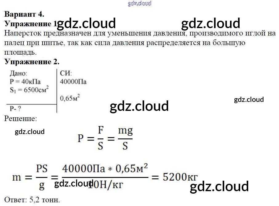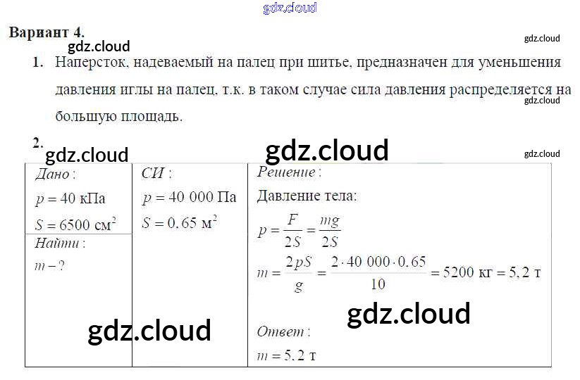 Ответ на задание Вариант №4 Дидактические материалы Физика за 7 (седьмой) класс Марон Вертикаль 2019