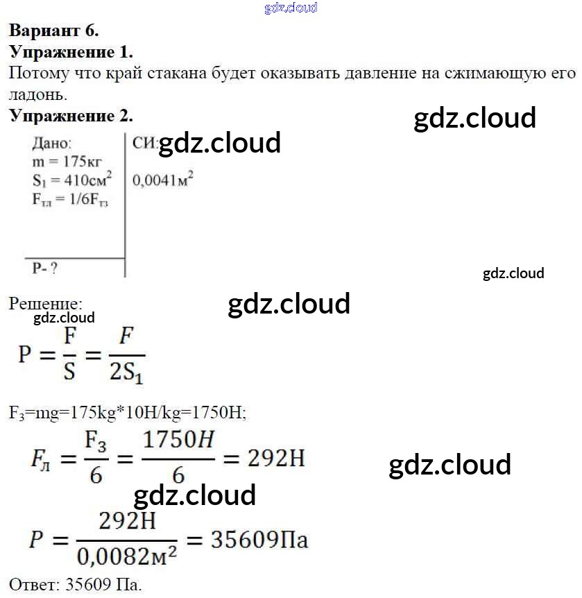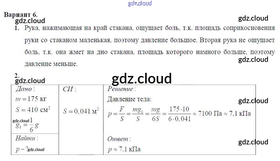 СР №-6. Давление твердых тел Ответы к самостоятельным работам по Физике 7 класс Дидактические материалы Марон Вертикаль Дрофа