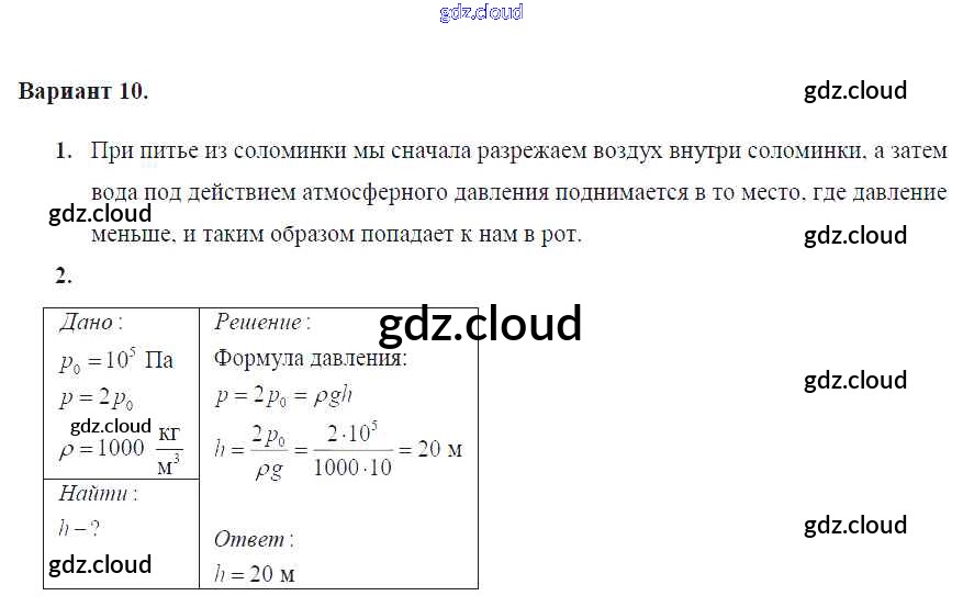 Ответ на задание Вариант №10 Дидактические материалы Физика за 7 (седьмой) класс Марон Вертикаль 2019