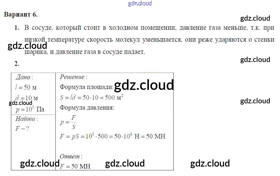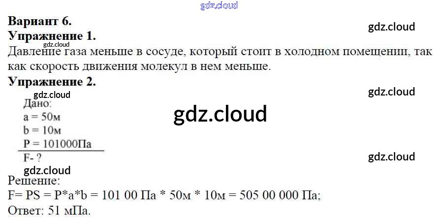 Ответ на задание Вариант №6 Дидактические материалы Физика за 7 (седьмой) класс Марон Вертикаль 2019