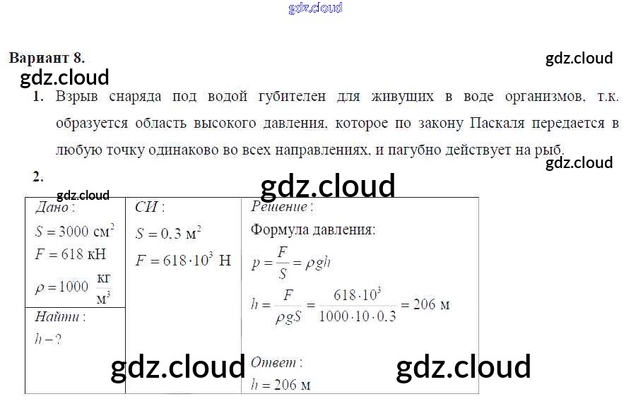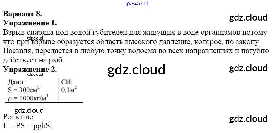 СР №-7. Давление в жидкостях и газах Ответы к самостоятельным работам по Физике 7 класс Дидактические материалы Марон Вертикаль Дрофа
