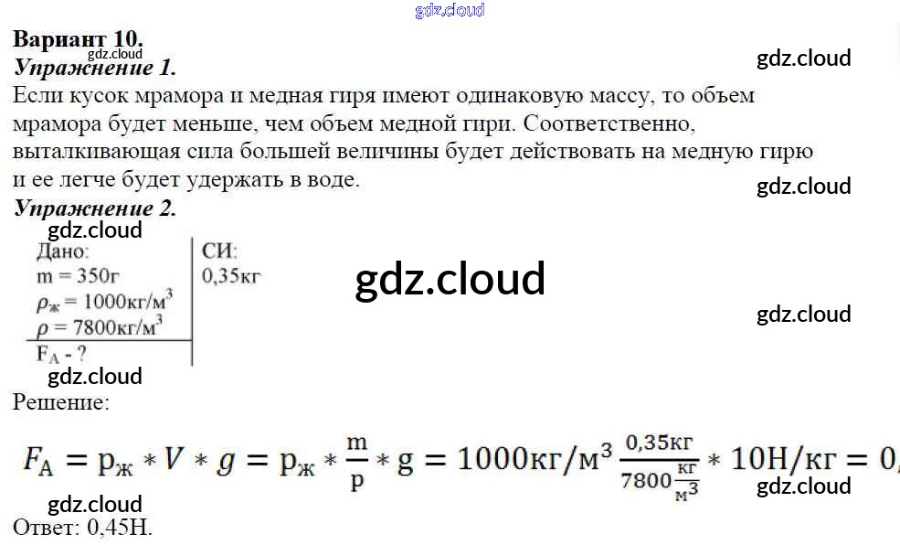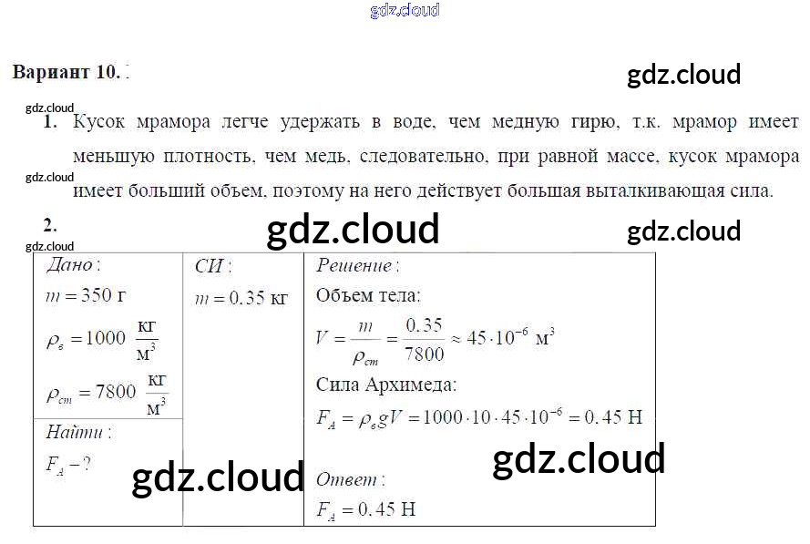 Ответ на задание Вариант №10 Дидактические материалы Физика за 7 (седьмой) класс Марон Вертикаль 2019