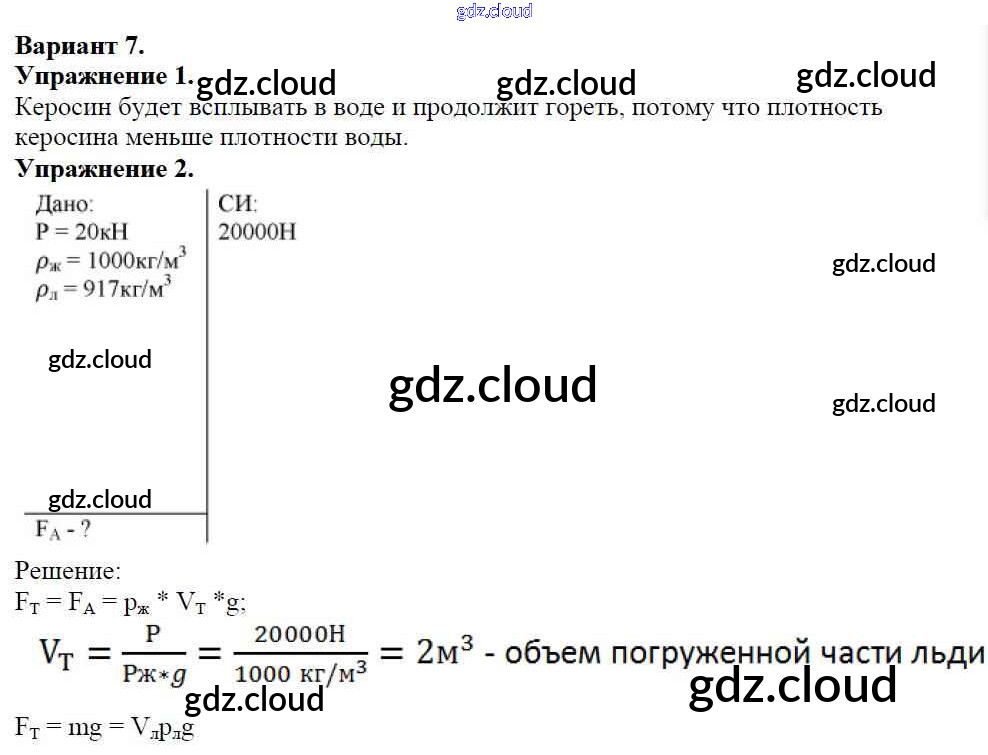 СР №-8. Архимедова сила. Плавание тел Ответы к самостоятельным работам по Физике 7 класс Дидактические материалы Марон Вертикаль Дрофа