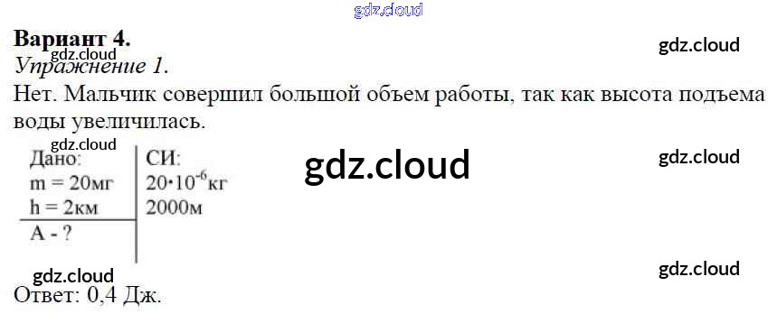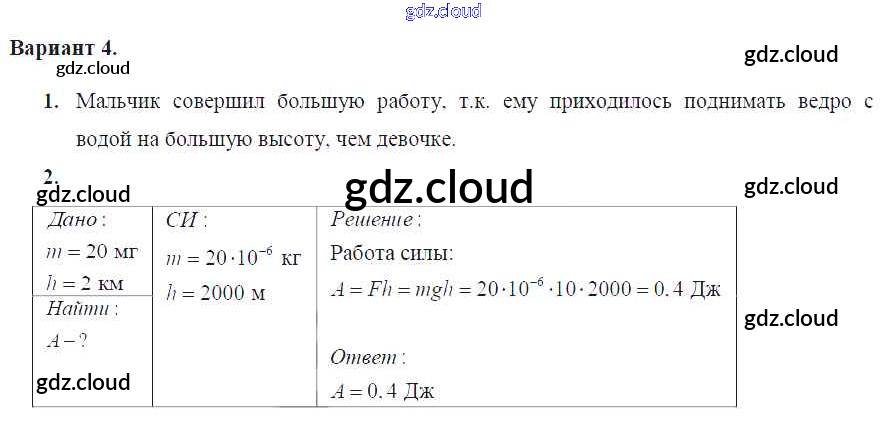 Ответ на задание Вариант №4 Дидактические материалы Физика за 7 (седьмой) класс Марон Вертикаль 2019