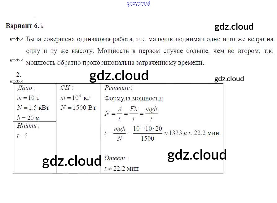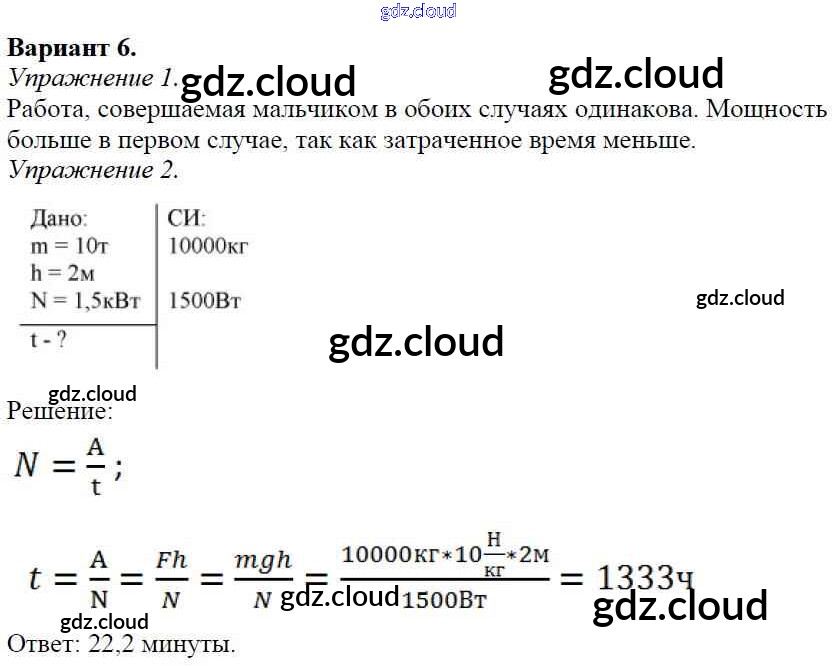 СР №-9. Механическая работа. Мощность Ответы к самостоятельным работам по Физике 7 класс Дидактические материалы Марон Вертикаль Дрофа
