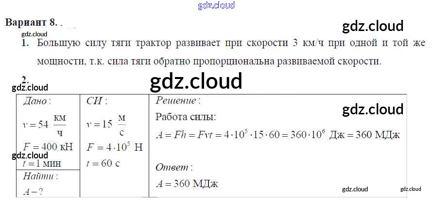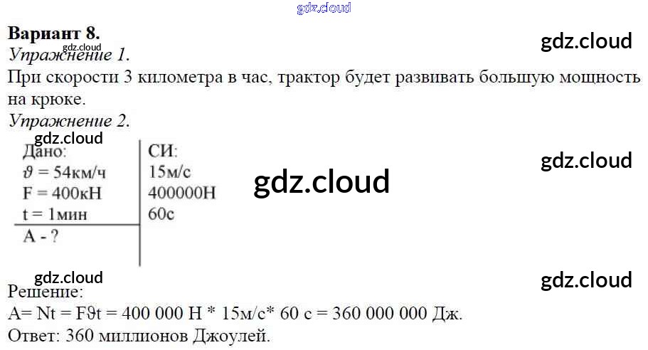 Ответ на задание Вариант №8 Дидактические материалы Физика за 7 (седьмой) класс Марон Вертикаль 2019