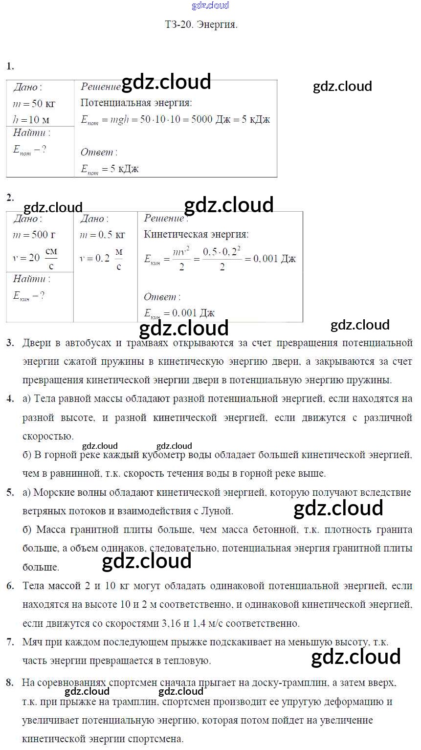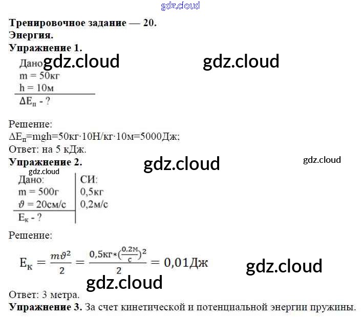 Ответ на задание Задание №20. Энергия Дидактические материалы Физика за 7 (седьмой) класс Марон Вертикаль 2019