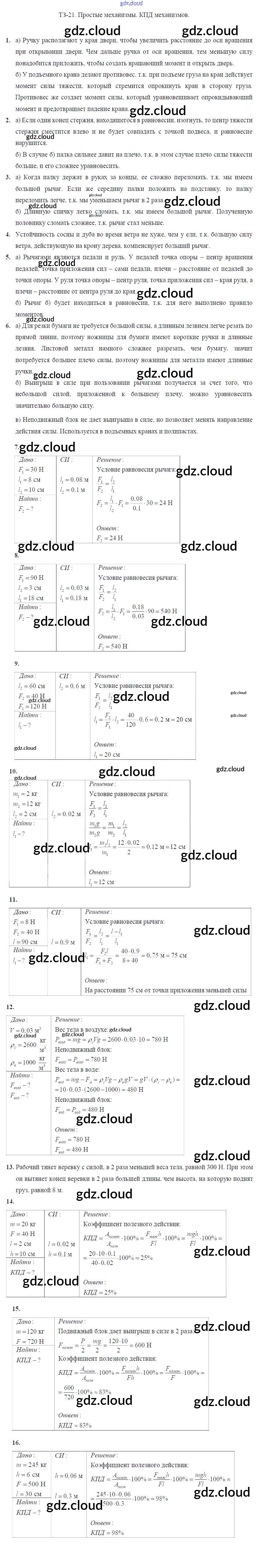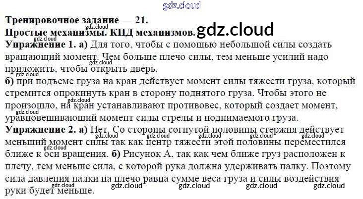 Ответ на задание Задание №21. Простые механизмы. КПД механизмов Дидактические материалы Физика за 7 (седьмой) класс Марон Вертикаль 2019
