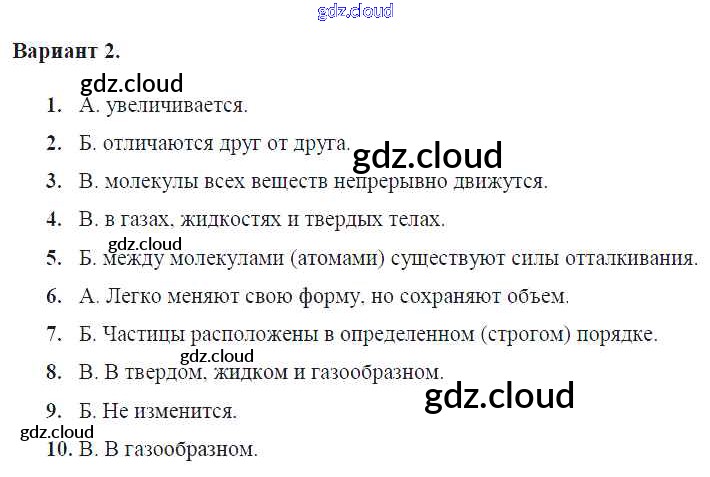 Тест №1. Строение вещества Ответы к тесты для самоконтроля по Физике 7 класс Дидактические материалы Марон Вертикаль Дрофа
