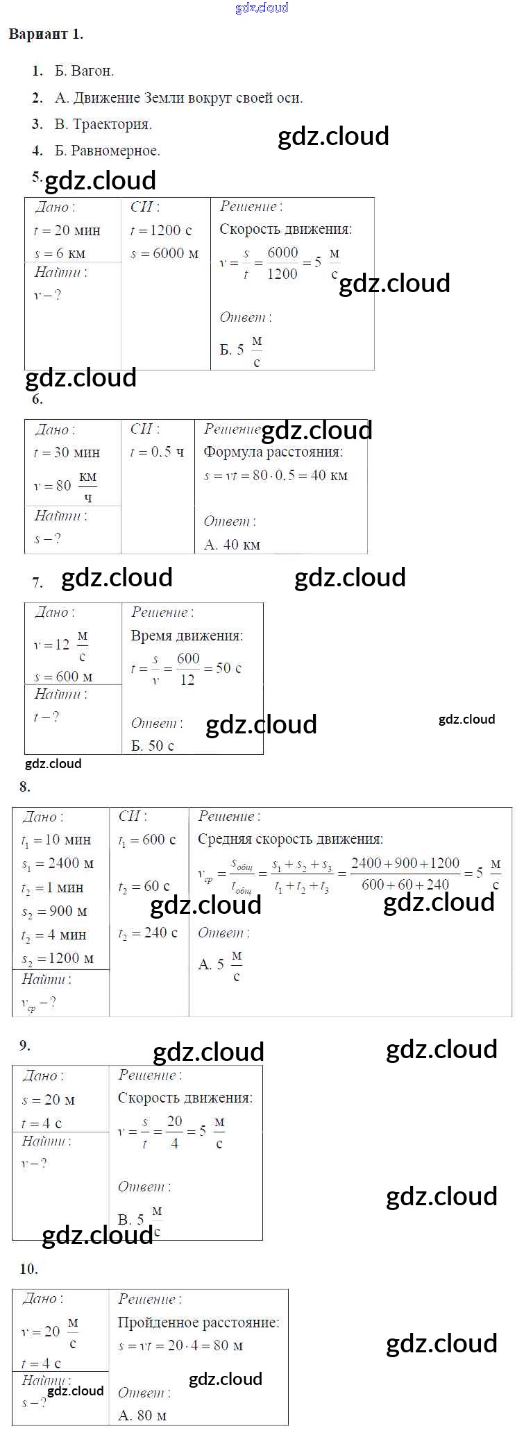 Тест №2. Механическое движение Ответы к тесты для самоконтроля по Физике 7 класс Дидактические материалы Марон Вертикаль Дрофа