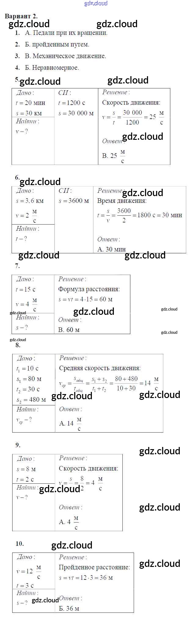 Тест №2. Механическое движение Ответы к тесты для самоконтроля по Физике 7 класс Дидактические материалы Марон Вертикаль Дрофа