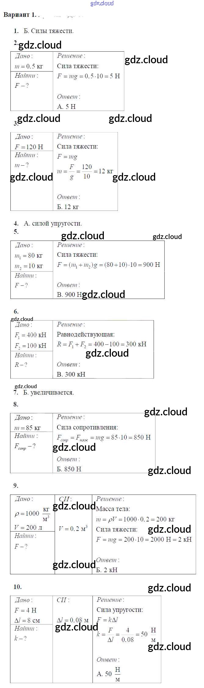 Ответ на задание Вариант №1 Дидактические материалы Физика за 7 (седьмой) класс Марон Вертикаль 2019