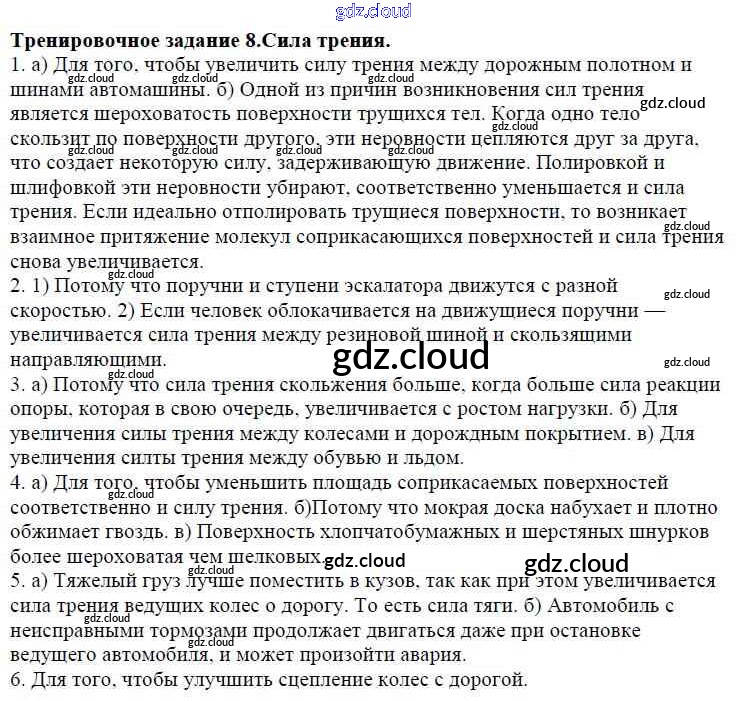 Ответ на задание Задание №8. Сила трения Дидактические материалы Физика за 7 (седьмой) класс Марон Вертикаль 2019