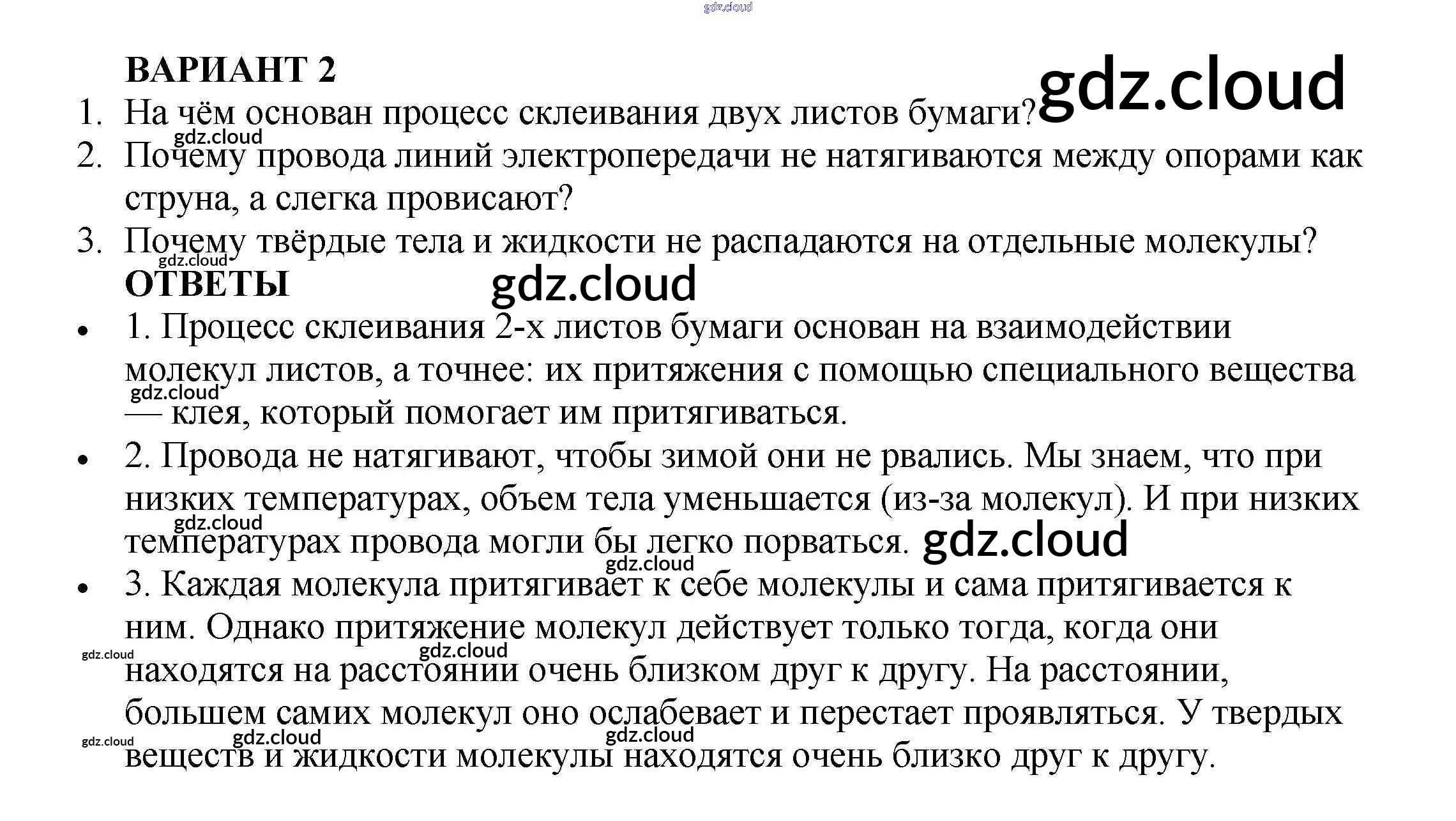 КР №-1. Первоначальные сведения о строении вещества Ответы к контрольным работам по Физике 7 класс Самостоятельные и контрольные работы Марон Вертикаль Дрофа