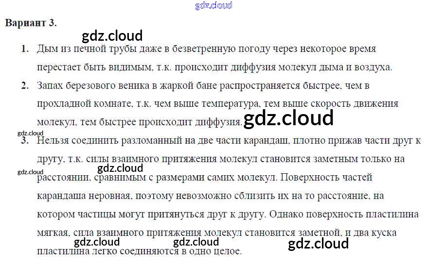 КР №-1. Первоначальные сведения о строении вещества Ответы к контрольным работам по Физике 7 класс Самостоятельные и контрольные работы Марон Вертикаль Дрофа