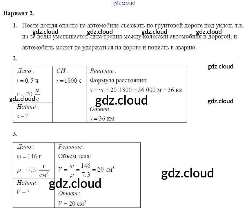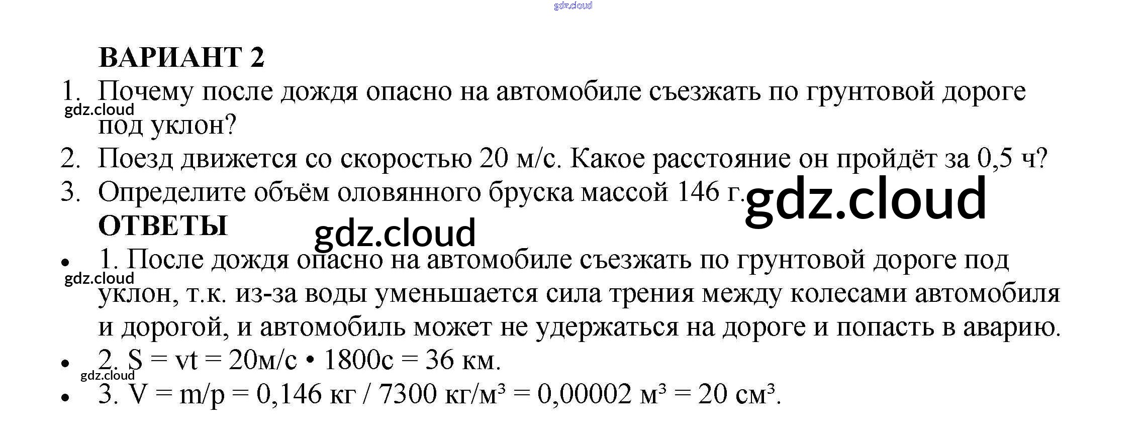 Ответ на задание Вариант №2 Самостоятельные и контрольные работы Физика за 7 (седьмой) класс Марон Вертикаль 2016