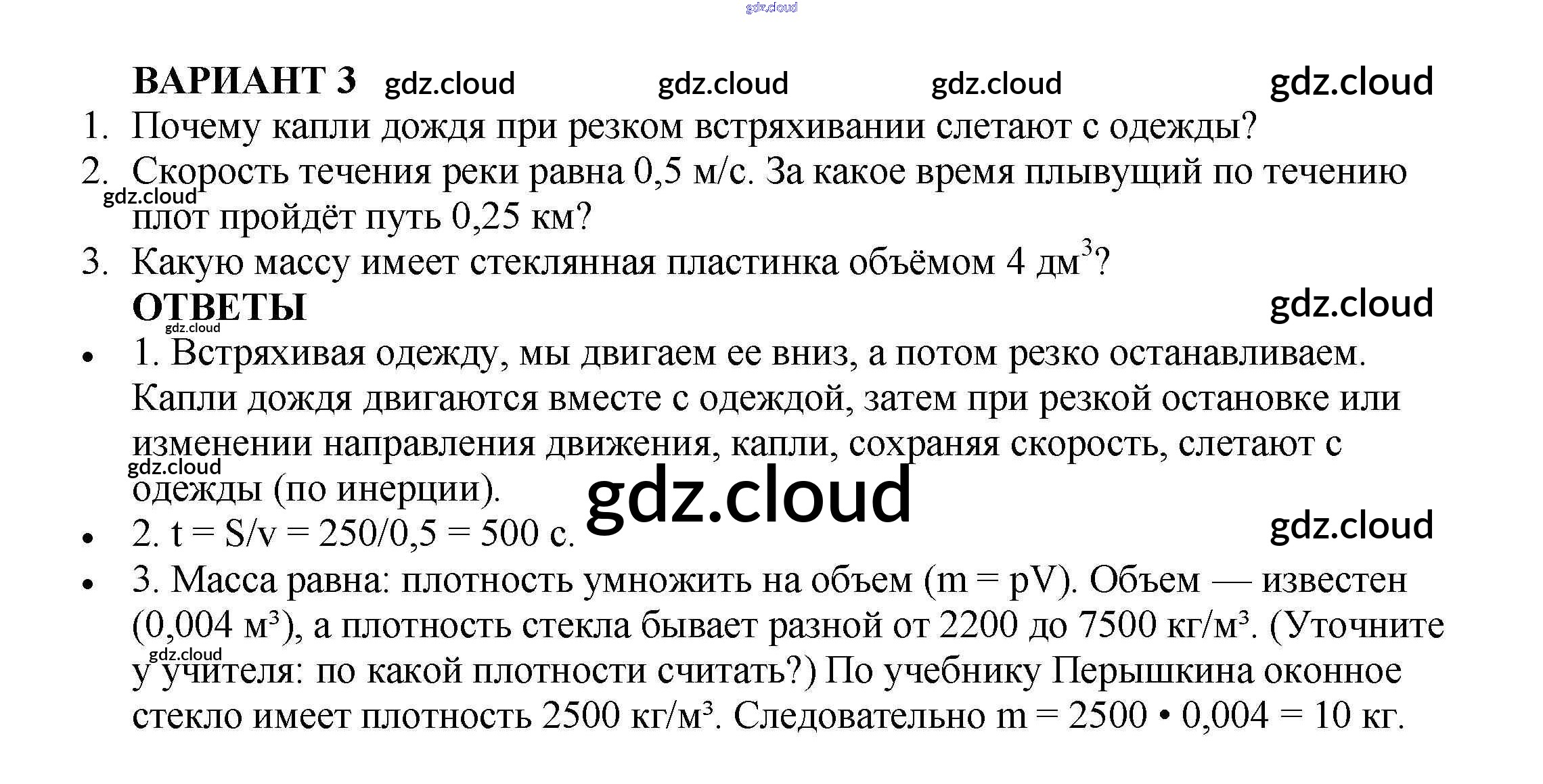 Ответ на задание Вариант №3 Самостоятельные и контрольные работы Физика за 7 (седьмой) класс Марон Вертикаль 2016