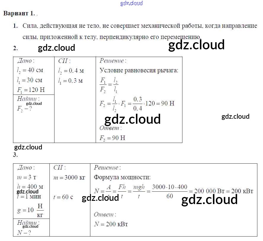 Ответ на задание Вариант №1 Самостоятельные и контрольные работы Физика за 7 (седьмой) класс Марон Вертикаль 2016