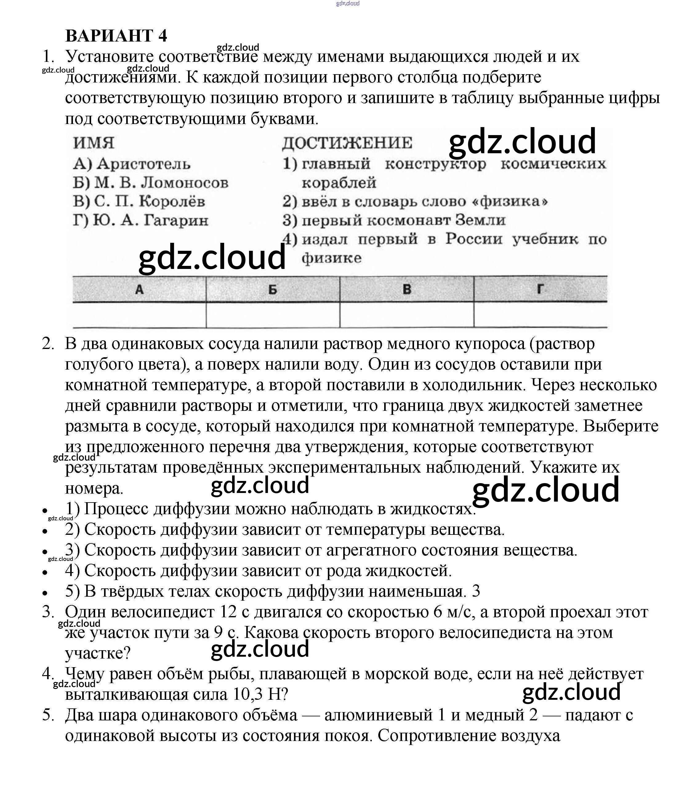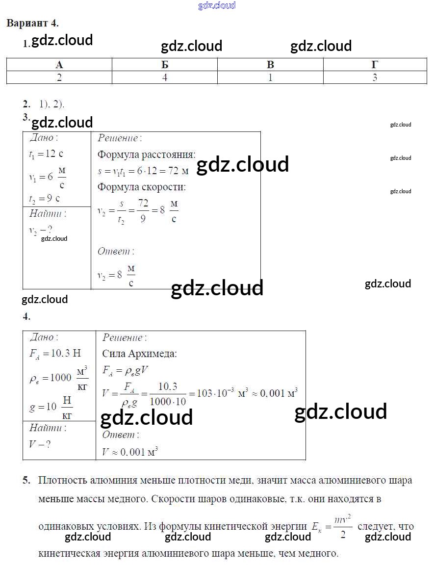Ответ на задание Вариант №4 Самостоятельные и контрольные работы Физика за 7 (седьмой) класс Марон Вертикаль 2016