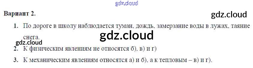 Ответ на задание Вариант №2 Самостоятельные и контрольные работы Физика за 7 (седьмой) класс Марон Вертикаль 2016