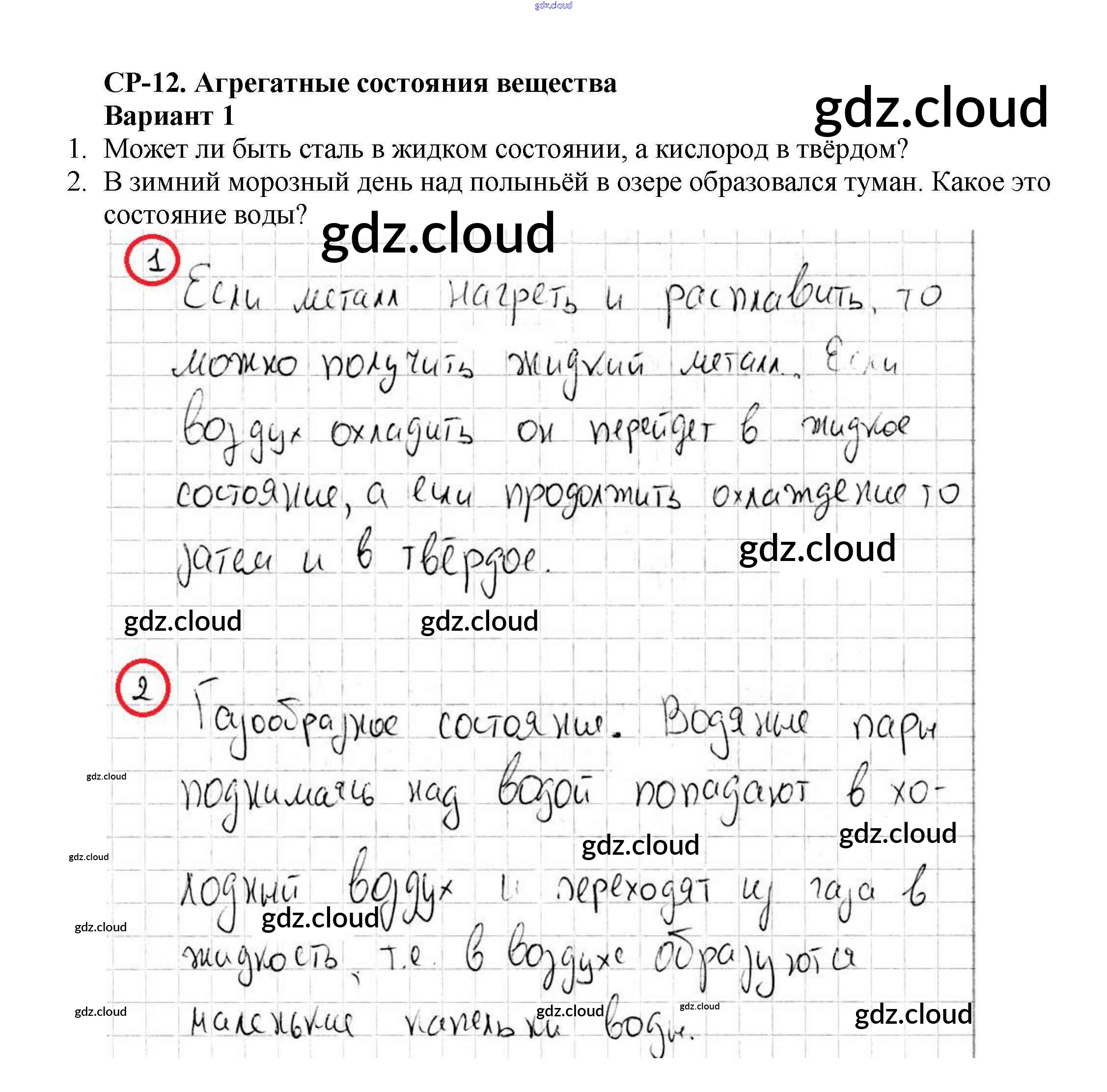 СР-№12. Агрегатные состояния вещества Ответы к самостоятельным работам по Физике 7 класс Самостоятельные и контрольные работы Марон Вертикаль Дрофа