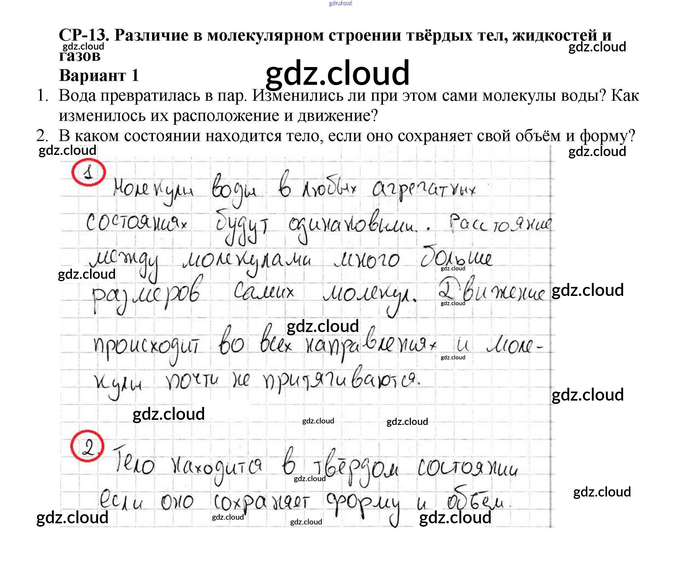 СР-№13. Различия в молекулярном строении твердых тел, жидкостей и газов Ответы к самостоятельным работам по Физике 7 класс Самостоятельные и контрольные работы Марон Вертикаль Дрофа
