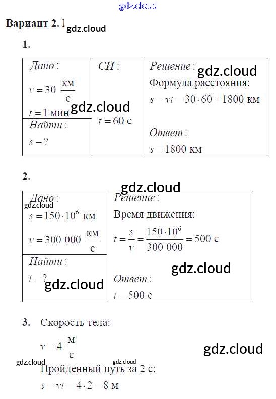 Ответ на задание Вариант №2 Самостоятельные и контрольные работы Физика за 7 (седьмой) класс Марон Вертикаль 2016