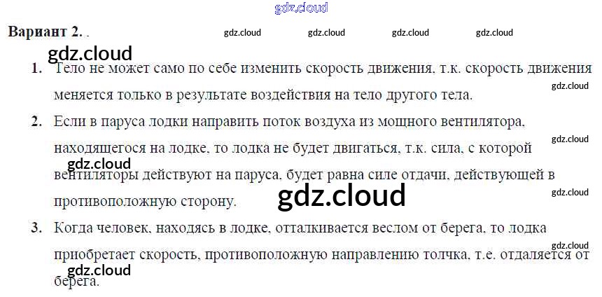 Ответ на задание Вариант №2 Самостоятельные и контрольные работы Физика за 7 (седьмой) класс Марон Вертикаль 2016