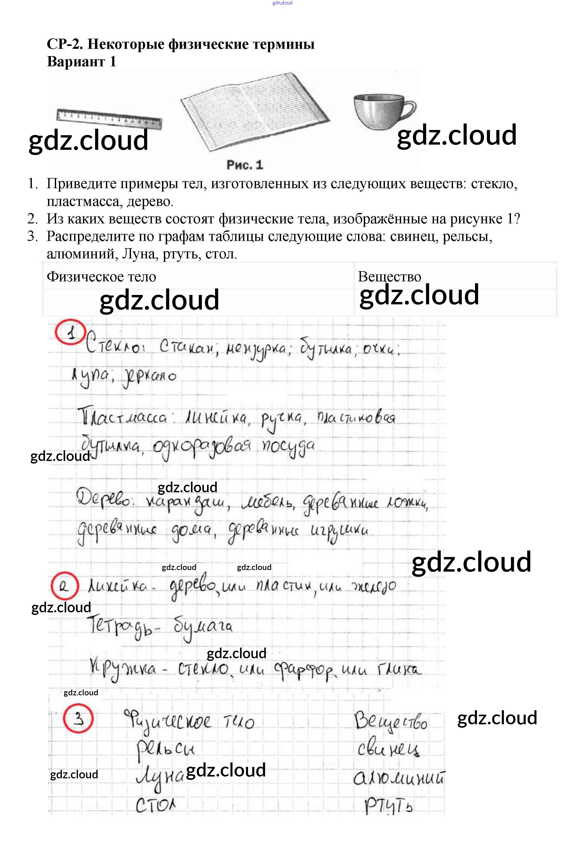 СР-№2. Некоторые физические термины Ответы к самостоятельным работам по Физике 7 класс Самостоятельные и контрольные работы Марон Вертикаль Дрофа