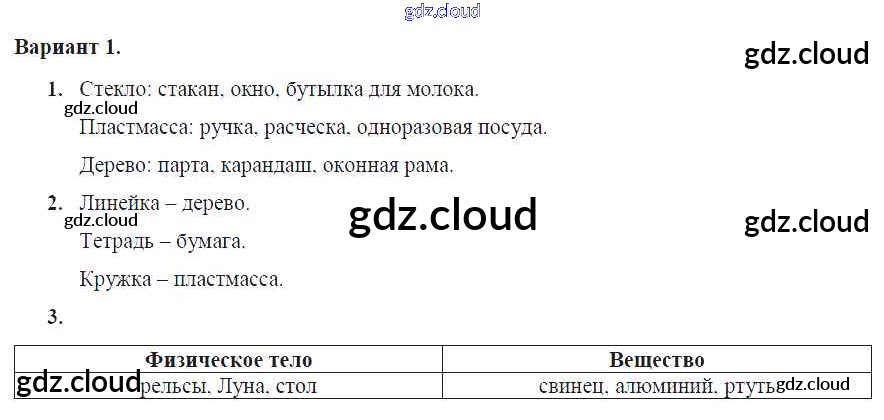 Ответ на задание Вариант №1 Самостоятельные и контрольные работы Физика за 7 (седьмой) класс Марон Вертикаль 2016