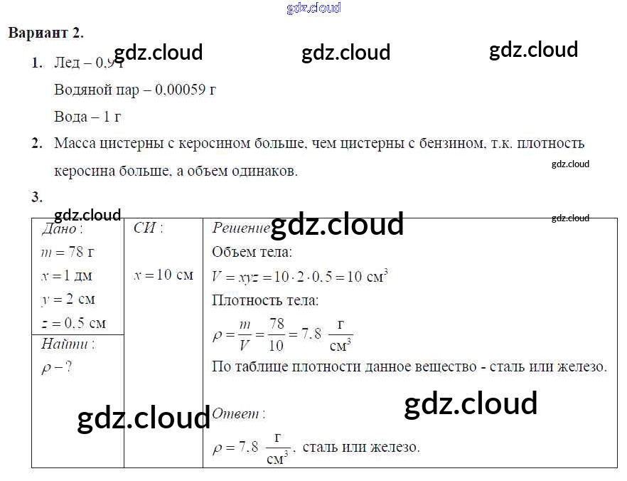 самостоятельная работа / ср-№22. плотность вещества / вариант №2