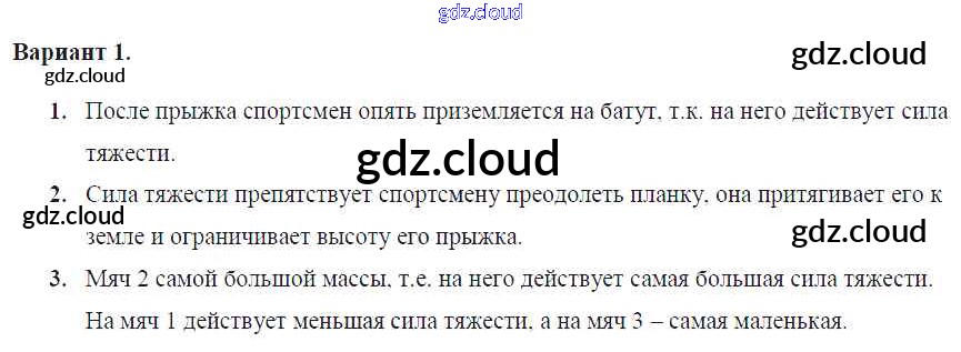 Ответ на задание Вариант №1 Самостоятельные и контрольные работы Физика за 7 (седьмой) класс Марон Вертикаль 2016