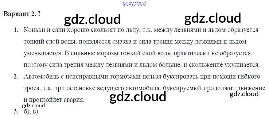 Ответ на задание Вариант №2 Самостоятельные и контрольные работы Физика за 7 (седьмой) класс Марон Вертикаль 2016