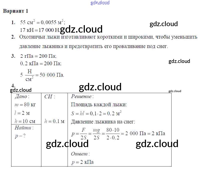 СР-№35. Давление. Единицы давления Ответы к самостоятельным работам по Физике 7 класс Самостоятельные и контрольные работы Марон Вертикаль Дрофа