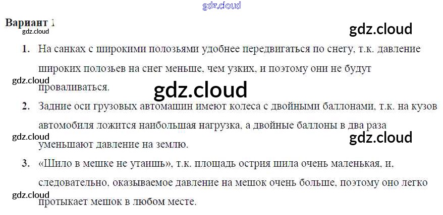 Ответ на задание Вариант №1 Самостоятельные и контрольные работы Физика за 7 (седьмой) класс Марон Вертикаль 2016