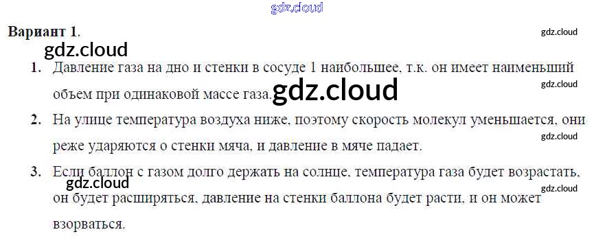 СР-№37. Давление газа Ответы к самостоятельным работам по Физике 7 класс Самостоятельные и контрольные работы Марон Вертикаль Дрофа