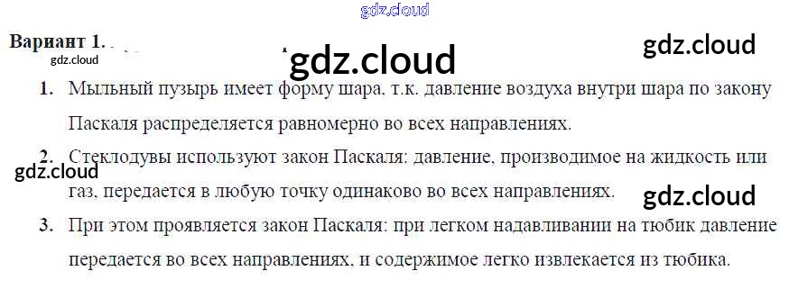 СР-№38. Передача давления жидкостями и газами. Закон Паскаля Ответы к самостоятельным работам по Физике 7 класс Самостоятельные и контрольные работы Марон Вертикаль Дрофа