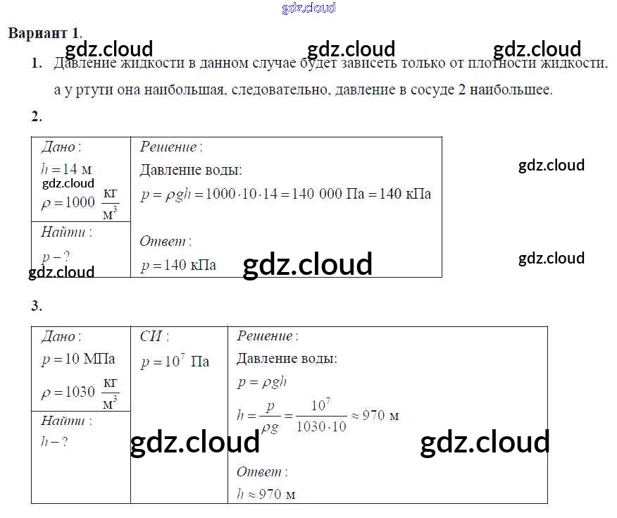 самостоятельная работа / ср-№40. расчет давления жидкости на дно и стенки сосуда / вариант №1
