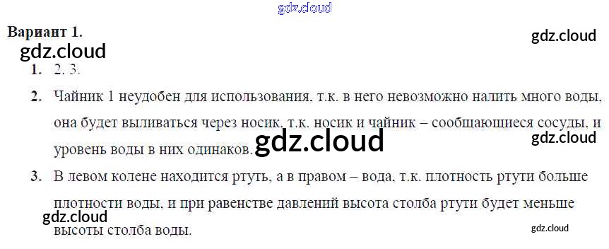 СР-№41. Сообщающиеся сосуды Ответы к самостоятельным работам по Физике 7 класс Самостоятельные и контрольные работы Марон Вертикаль Дрофа