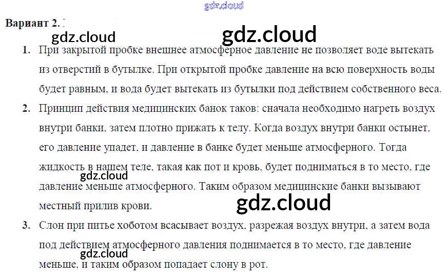СР-№42. Вес воздуха. Атмосферное давление Ответы к самостоятельным работам по Физике 7 класс Самостоятельные и контрольные работы Марон Вертикаль Дрофа