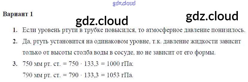 СР-№44. Измерение атмосферного давления. Опыт Торричелли Ответы к самостоятельным работам по Физике 7 класс Самостоятельные и контрольные работы Марон Вертикаль Дрофа