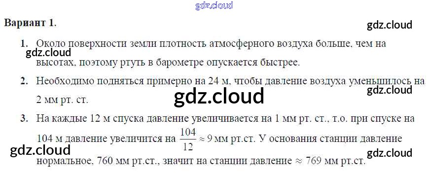 СР-№46. Атмосферное давление на различных высотах Ответы к самостоятельным работам по Физике 7 класс Самостоятельные и контрольные работы Марон Вертикаль Дрофа
