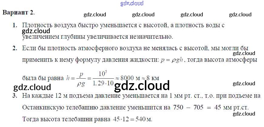 самостоятельная работа / ср-№46. атмосферное давление на различных высотах / вариант №2