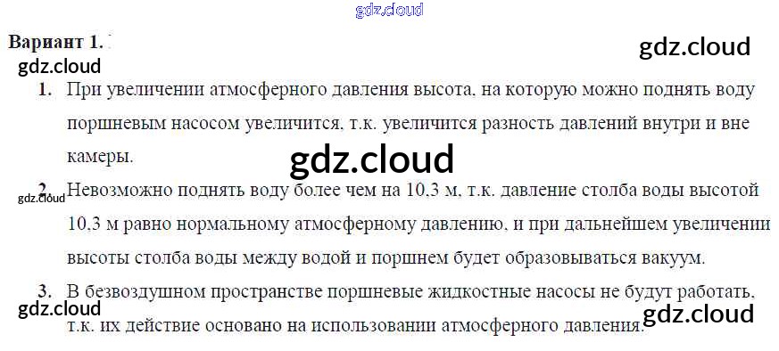 СР-№48. Поршневой жидкостный насос Ответы к самостоятельным работам по Физике 7 класс Самостоятельные и контрольные работы Марон Вертикаль Дрофа