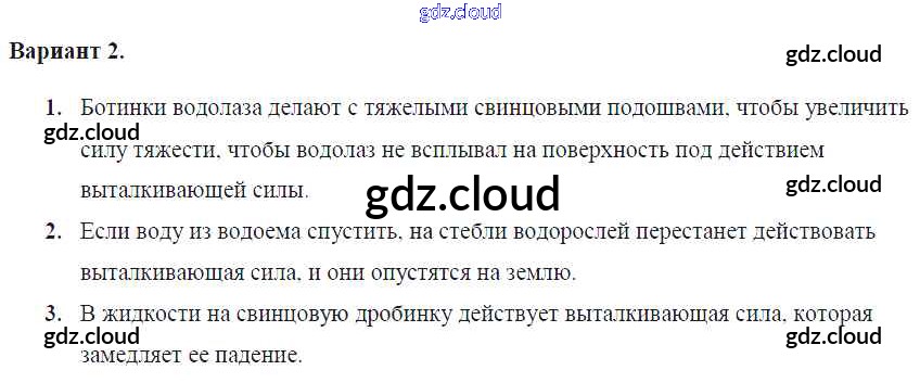 СР-№50. Действие жидкости и газа на погруженное в них тело Ответы к самостоятельным работам по Физике 7 класс Самостоятельные и контрольные работы Марон Вертикаль Дрофа