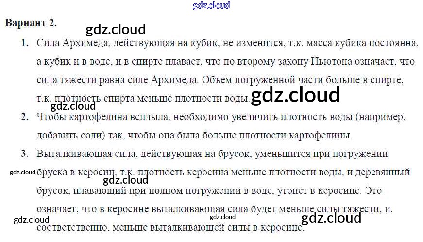 самостоятельная работа / ср-№52. плавание тел / вариант №2
