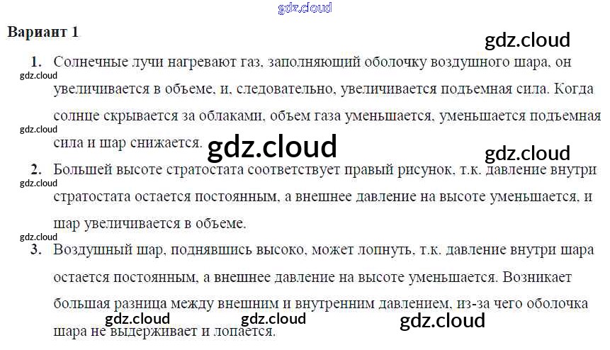 СР-№54. Воздухоплавание Ответы к самостоятельным работам по Физике 7 класс Самостоятельные и контрольные работы Марон Вертикаль Дрофа